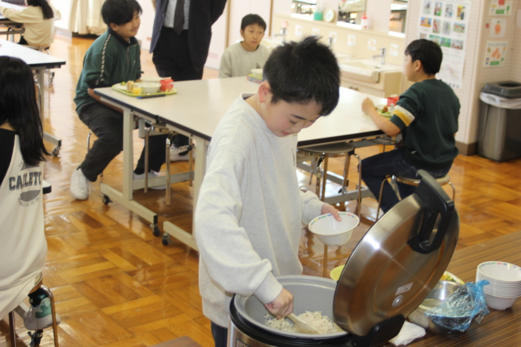 給食の初めに、保体員会が準備したミニクイズを行い楽しみながら学びました。また、6年生から調理員さんに6年間のお礼の気持ちを込めて作成したアルバムを手渡しました。また、給食はリクエストバイキング。ご飯はおいなりさんとわかめご飯、春雨スープに、おかずは、ぶたピー炒めに、チキンレモン、サンバのみそだれ焼き、ちくわ天に、ブロッコリー、更にデザートにはパフェと寒天ゼリーと本当に幸せいっぱいのメニューでした!!