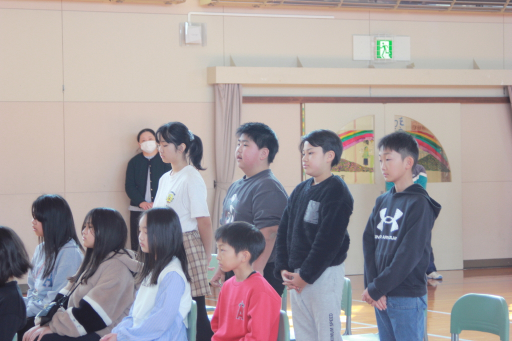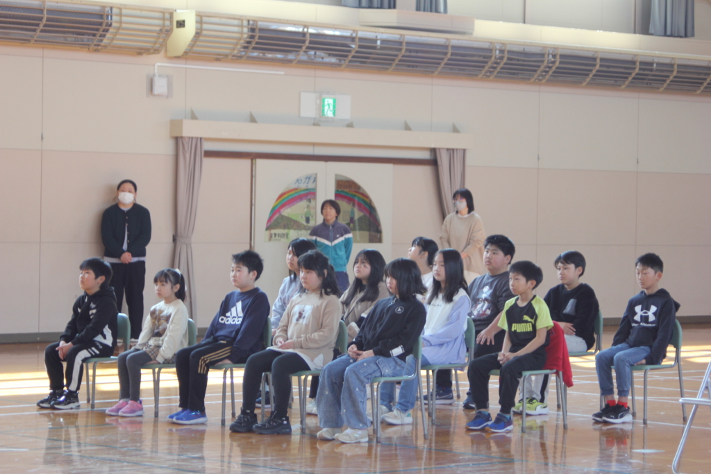 あと約3週間で3人の6年生が卒業します。本日の2・3時間目に「卒業を祝う会」を行いました。各学年からの発表、みんなで行うゲームなど楽しい一時を過ごしました!!