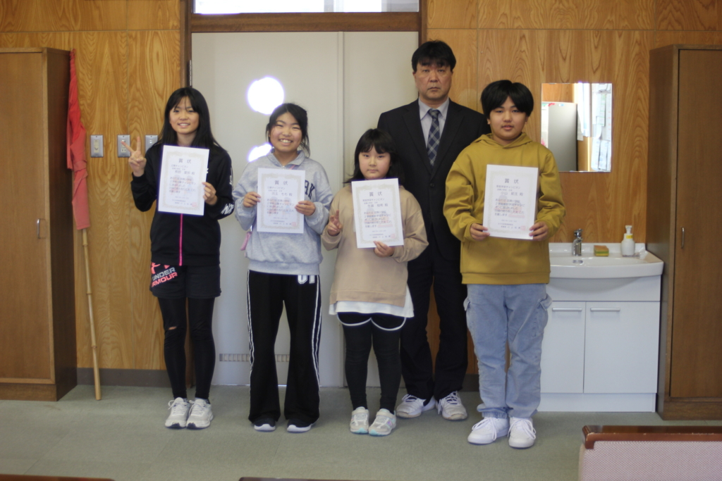 12月19日(金)えりも町教育委員会教育長に来校していただいて、2学期のチャンピオンを表彰していただきました。1人お休みがいましたので、22日(月)に校長から賞状を渡し、4人で集合写真を撮りました!!