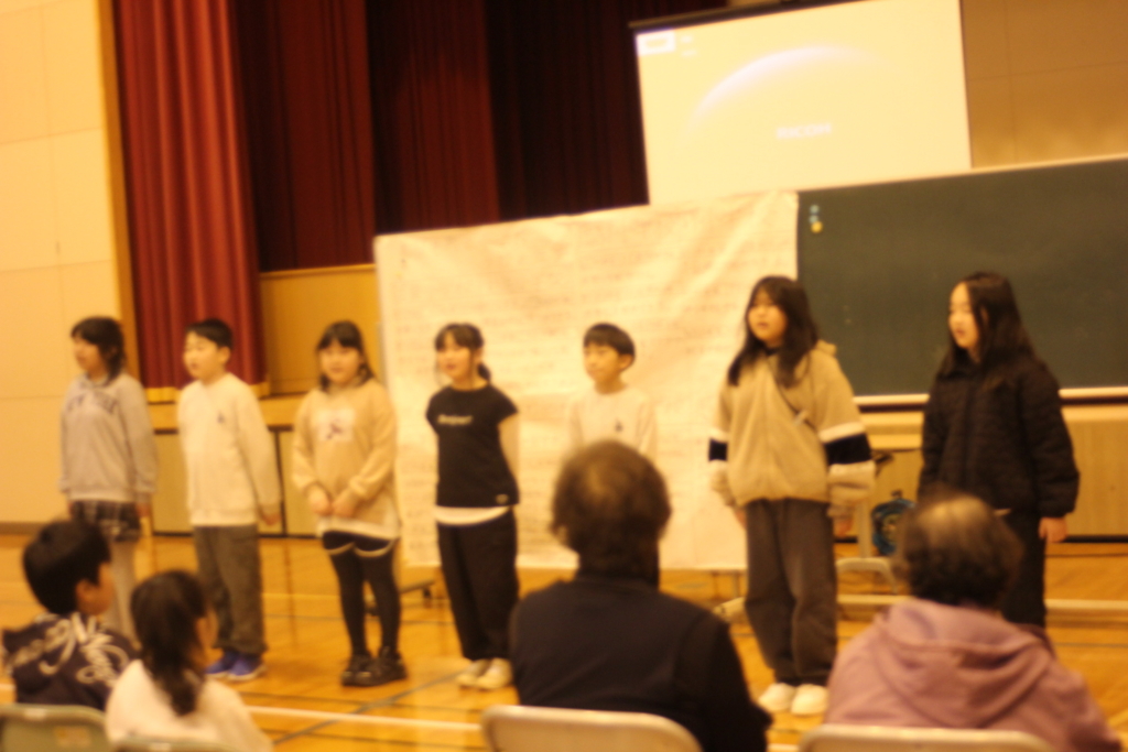1年間総合的な学習などで学んできたことの発表を行った地域の学習発表会、その後、餅つきや百人一首を頑張った冬祭りを行いました!!